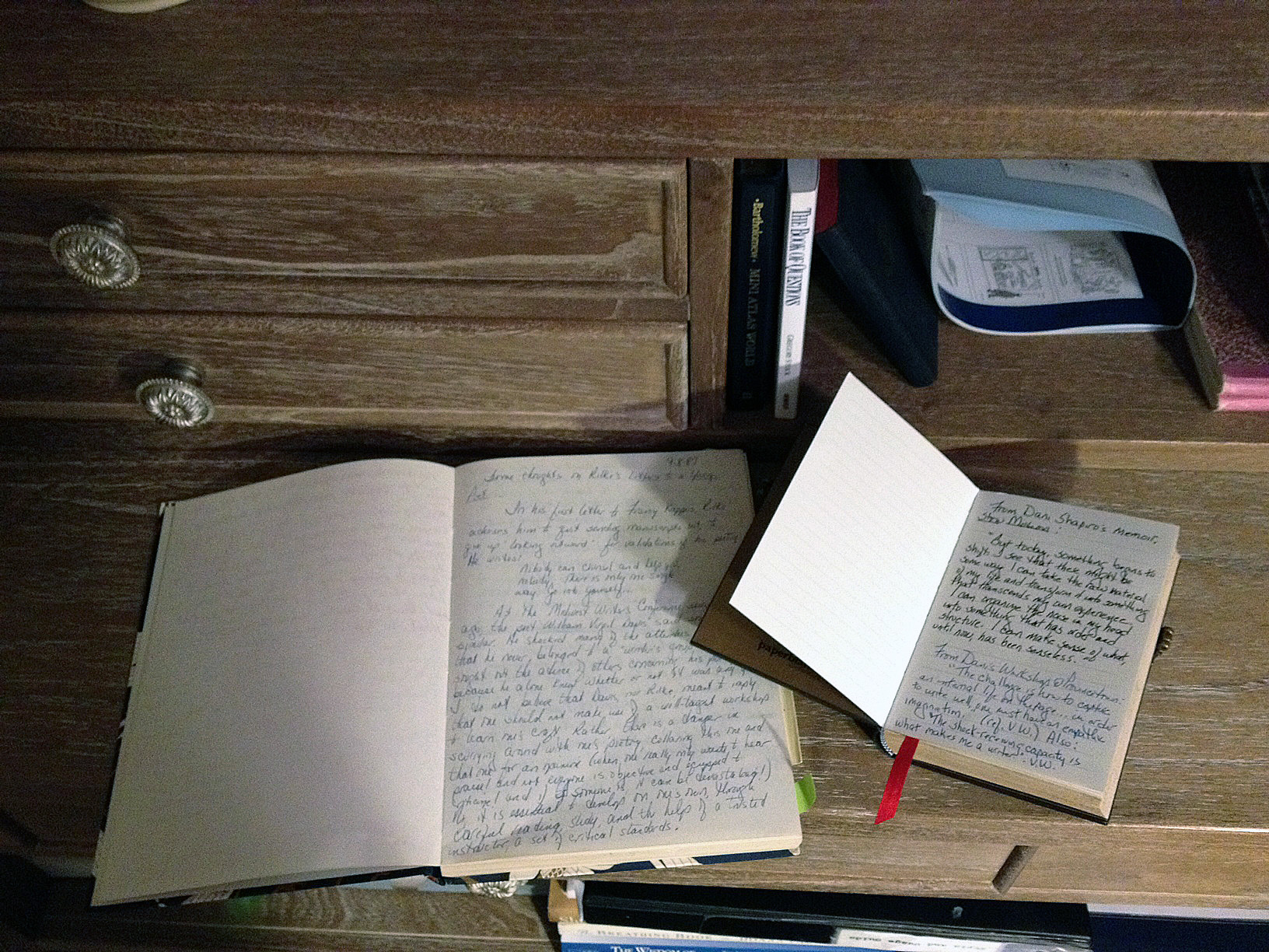 Shapiro, like the most insightful physician you’ve ever encountered, honed in on our individual manuscripts, but only after each of us chimed in with our notes and comments, questions and praise. She always went last, offering keen observations from her vast experience as a writer and teacher, and reading choice excerpts—carefully chosen to apply to the work at hand—from her small notebook, what she calls her book of “curated wisdom.” For example: