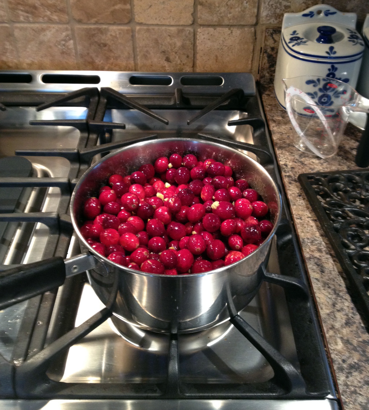 1. Combine all of the ingredients in a saucepan. Cook over medium heat, stirring occasionally, until the cranberries pop open, about 10 minutes. (Don’t overcook them.)