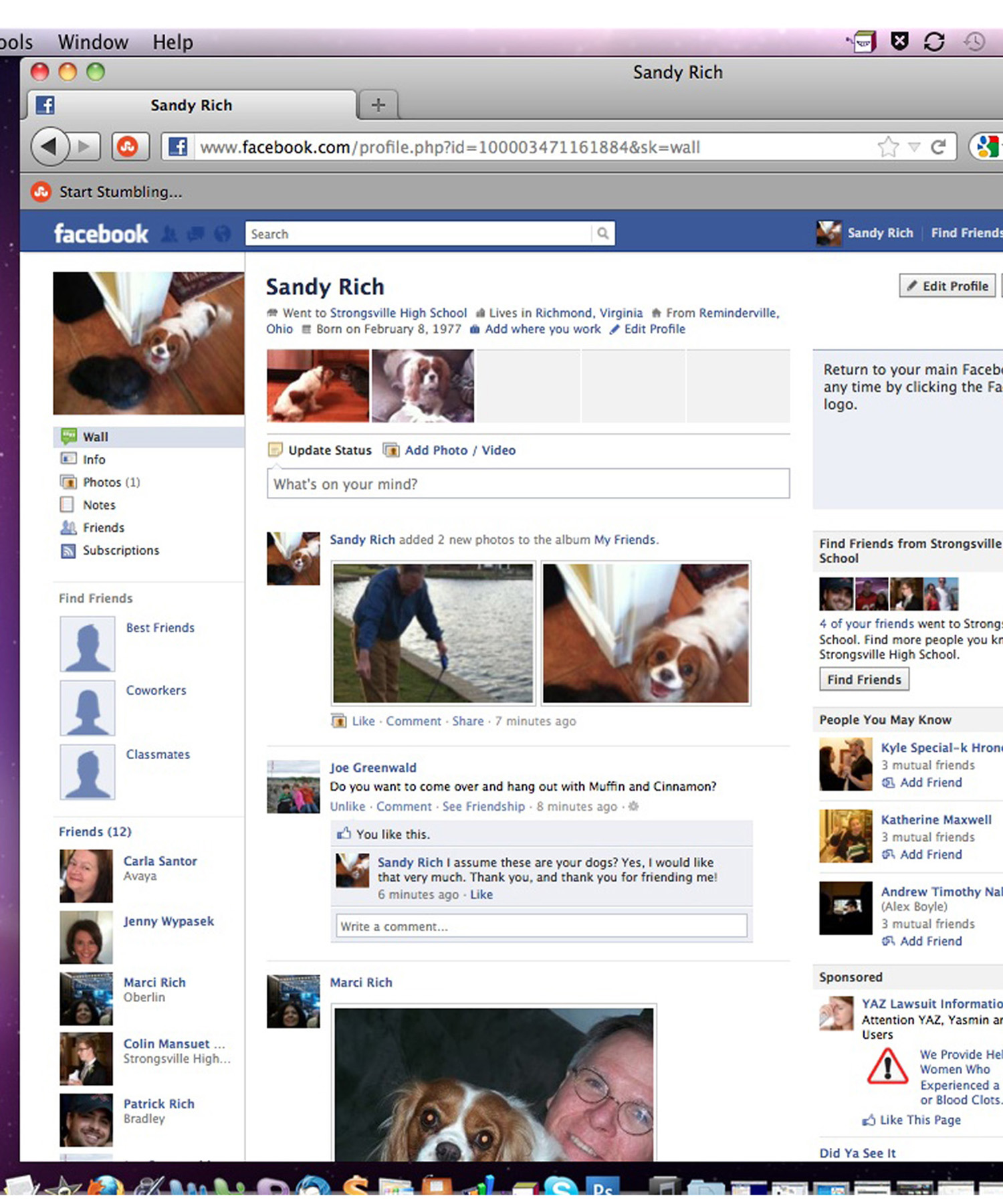 The image you’re looking at is a screenshot of our Cavalier King Charles‘ new Facebook page. No, I don’t have too much time on my hands—I l just love Sandy to distraction. She’s the daughter I never had. (And she’s not the first dog in our family to have a Facebook page; her cousin Gunner beat her to it.)